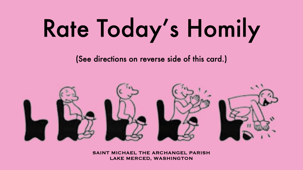 I think the time has come for the Catholic Church in our country to actively solicit and encourage feedback from parishioners on the Mass, in general, and more specifically on the quality of homilies.