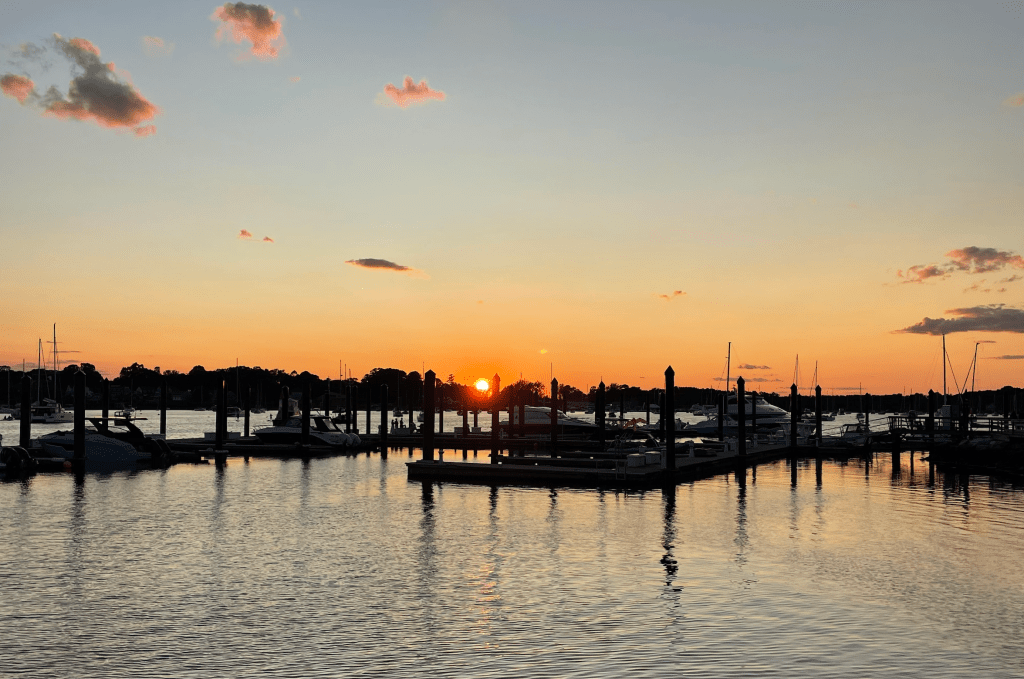 We awoke and enjoyed an early dinner of leftovers from lunch before taking a walk down to the harbor where we were treated to a spectacular sunset. As it began to get dark, we headed back to the house for dessert. A perfect end to a beautiful day.