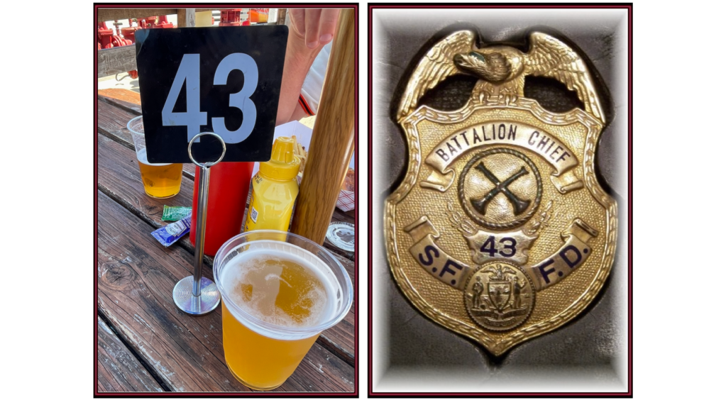 It began a few years after my father died. His favorite number was 43. He graduated from Saint Ignatius High School in San Francisco in 1943. When SI had an annual raffle, at which they sold only 200 tickets at $100 each, Dad always bought ticket number 43. (He never won.) When he was sworn-in as Battalion Chief in the San Francisco Fire Department, Dad’s badge number was 43. The number was quite meaningful for him.