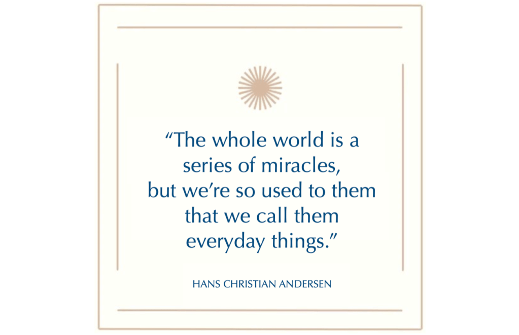 I don’t consider miracles to be magic. Rather, I see them as undeserved God-given gifts. They seem to happen at random times, which, in retrospect, often proves to be the perfect time. What’s important is that we be open to receiving them and acknowledging them for what they are. Perhaps this helps to explain my passion for gratitude. It takes discipline and mindfulness to consistently see and experience the world through the lens of gratitude. Despite the inevitable challenges of day to day living, there is so much for which to be grateful.