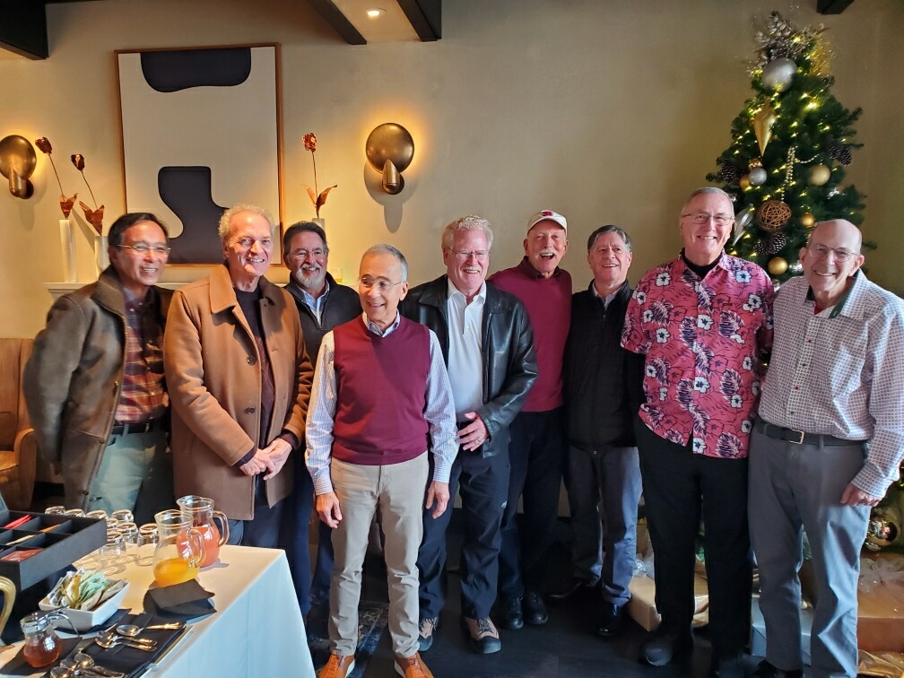 A few such stories were shared yesterday when the fine young gentlemen in the photo above, along with our spouses and significant others, enjoyed an afternoon of food, beverages, lively conversation, friendship, memories, and gratitude for the ability to get together once again this year. Bill and Penny Roche were our gracious hosts at the El Prado Hotel in Palo Alto.