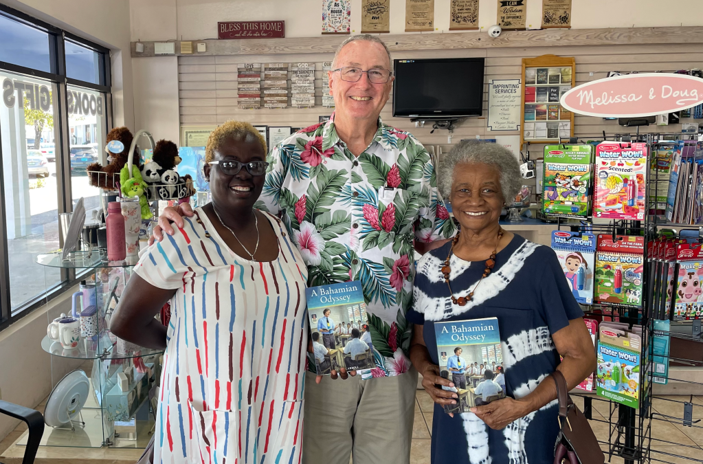Mrs. Adderley was accompanied by one of her daughters, Daria, who teaches at Saint Augustine’s College today. Their visit to Logos on Saturday was one of the highlights of this visit to Nassau.